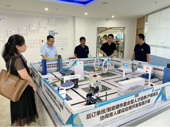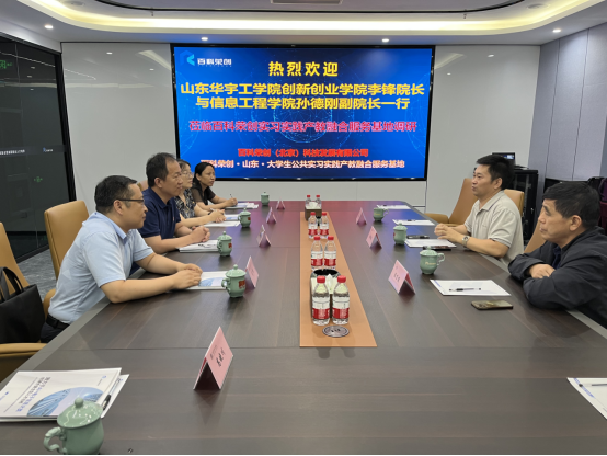 7月12日,创新创业学院院长李锋、beat365中文版官网入口常务副院长孙德刚、物联网工程专业负责人郝萍萍、网络工程专业负责人刘媛、办公室主任高晓川到百科荣创(山东)大学生公共实习实践产教融合服务基地进行实地调研考察。