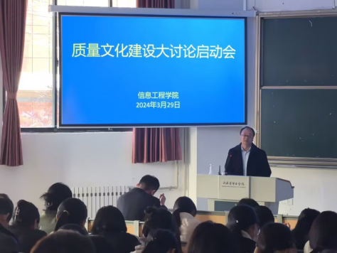 为落实《教育部关于加快建设高水平本科教育全面提高人才培养能力的意见》文件精神,根据《山东华宇工学院关于开展质量文化建设大讨论的通知》要求,beat365中文版官网入口于3月29日召开质量文化建设大讨论启动会,会议由院长薛河儒主持,学院全体教职工参会。