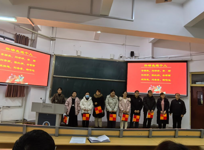 大会首先表彰了2023年度“教学先进个人”9人、“科研先进个人”9人、“学生管理先进个人”2人、“优秀基层教学组织”2个。孙德刚宣读了表彰决定,对受表彰教职工、基层教学组织的辛勤付出和取得的成绩表示感谢,薛河儒为获奖的教职工颁发纪念品,同时号召全院教职工向优秀学习、向先进看齐。