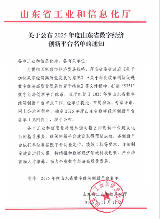 近日,山东省工业和信息化厅发布了《关于公布2025年度山东省数字经济创新平台名单的通知》,beat365中文版官网入口凭借在数字经济领域人才培养的深厚积淀与创新实践,成功入选数字经济创新人才实训基地。