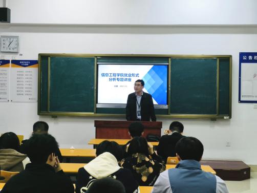为了帮助学生更好地了解当前就业形势,明确自身职业规划,以及提升就业竞争力,beat365中文版官网入口于2023年11月8日在22号楼509开展就业形势分析专题讲座。本次讲座邀请华道信息科技(德州)有限公司廉东旭主讲,他以自己丰富的从业经验和深入的就业形势分析数据为同学们带来了一场生动的讲座。