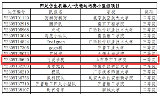 竞赛启动以来,学校高度重视,精心组织,广泛宣传发动,组建了竞赛宣讲团,收到学生参赛作品数项。通过校内评审,评选出重点培育项目,成立了“机器人大赛”训练营,邀请校内外专家进行“一对一”辅导和赛前强化。经国家赛决赛评审,beat365官网由beat365中文版官网入口“可爱修狗”队带来的参赛作品在四足仿生机器人-快递运送赛小型组项目中与beat365中文版官网入口“LWZTeam”队带来的参赛作品在四足仿生机器人-快递运送赛中型组项目中各荣获一等奖。